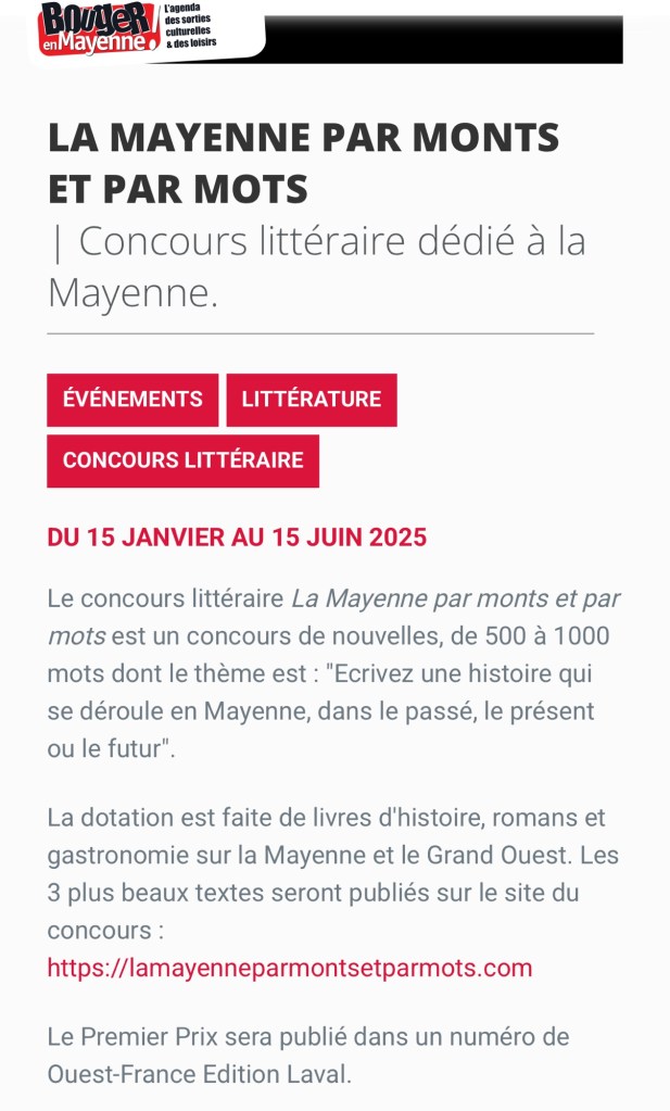 La deuxième saison du concours littéraire La Mayenne Par Monts et par Mots ouvrira ses portes, le 15 janvier 2026, afin d’accueillir la prose de celles et de ceux qui ont le désir d’écrire sur leur département.