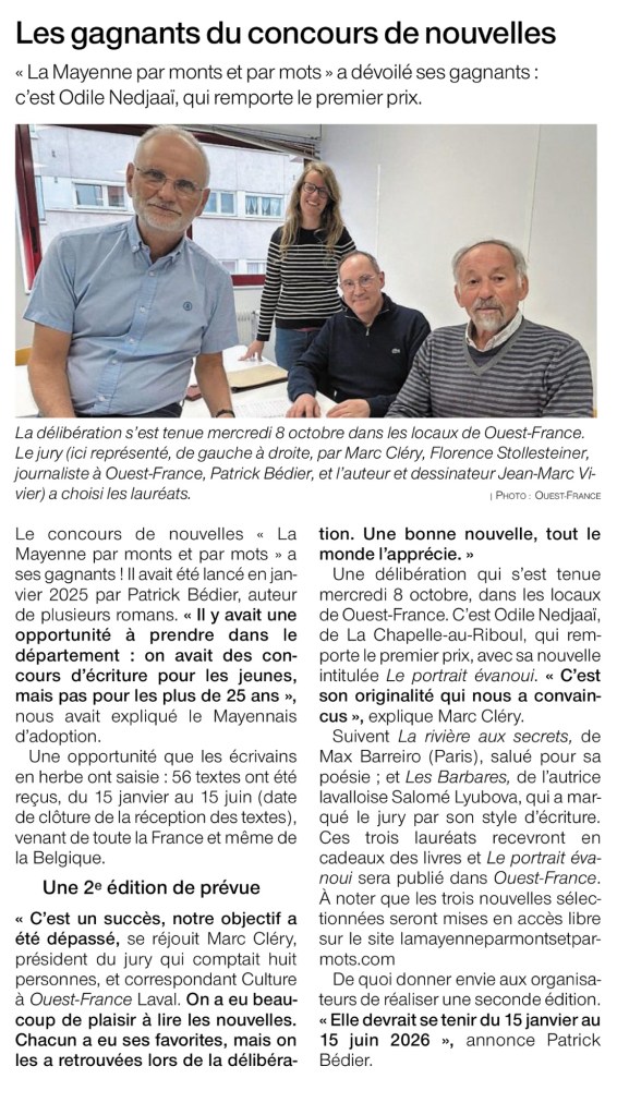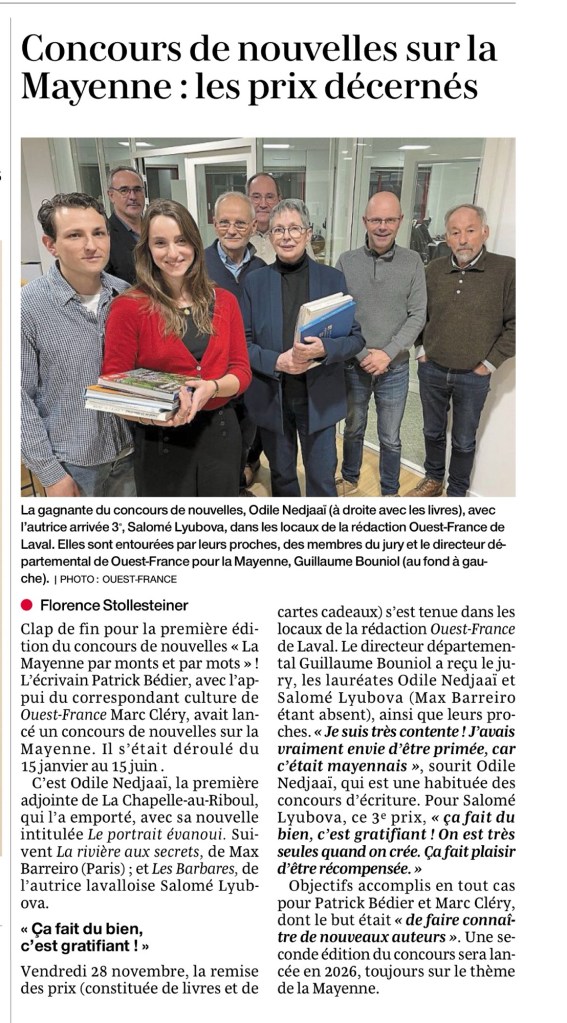 OUEST-FRANCE, le 1er quotidien français, propose la publication de la nouvelle du Premier Prix dans ses colonnes, ainsi que des exemplaires de La Mayenne Vue du ciel.