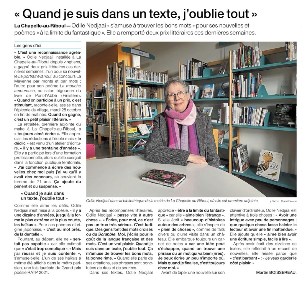 Le Premier Prix de la première saison est Odile Nedjaaï. Maintes fois primée pour des concours littéraires, elle vit en Mayenne depuis plus de vingt ans.